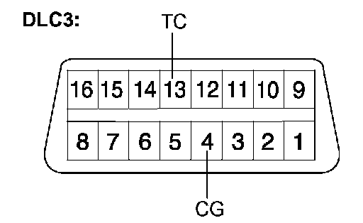 6) Disconnect the terminal 13 (TC) and 4 (CG) of the DLC3.
