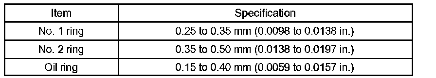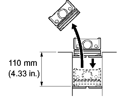 Using a piston, push the piston ring a little beyond the bottom of the ring travel, 110 mm (4.33 inch) from the top of the cylinder block.