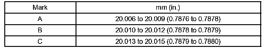 Piston pin outer diameter 20.004 to 20.013 mm (0.7876 to 0.7879 inch)
