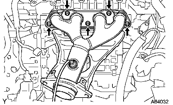 Install a new gasket and the exhaust manifold with the 5 nuts.