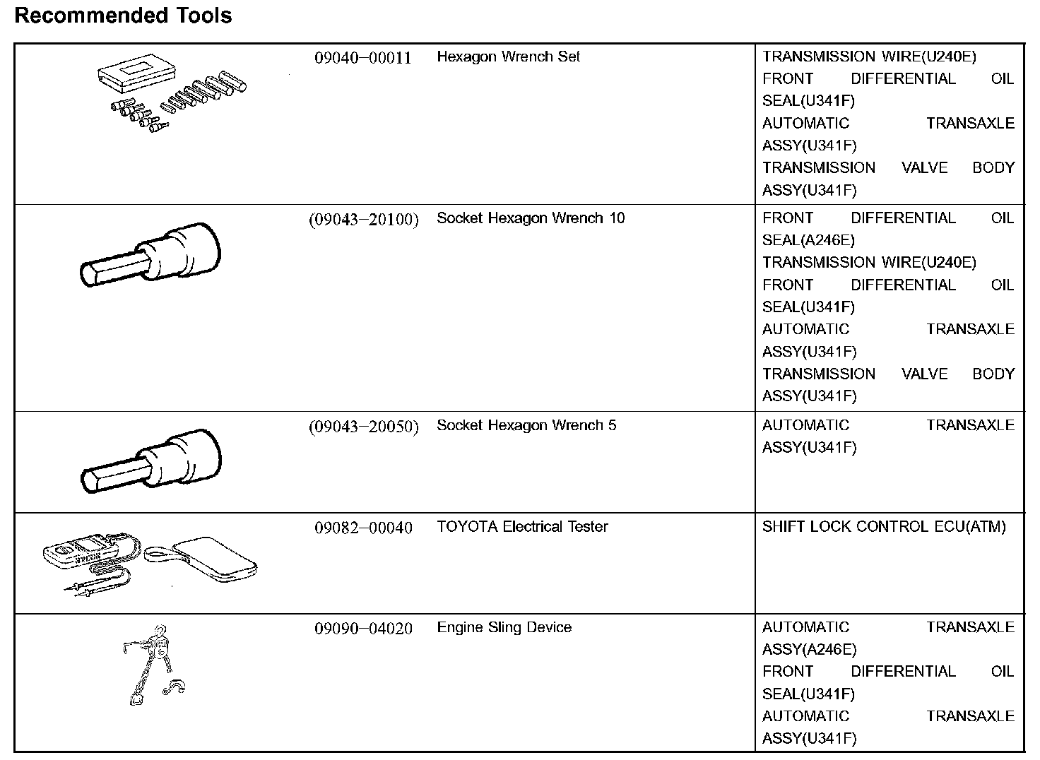 Automatic Transmission / Trans-Recommended Tools: