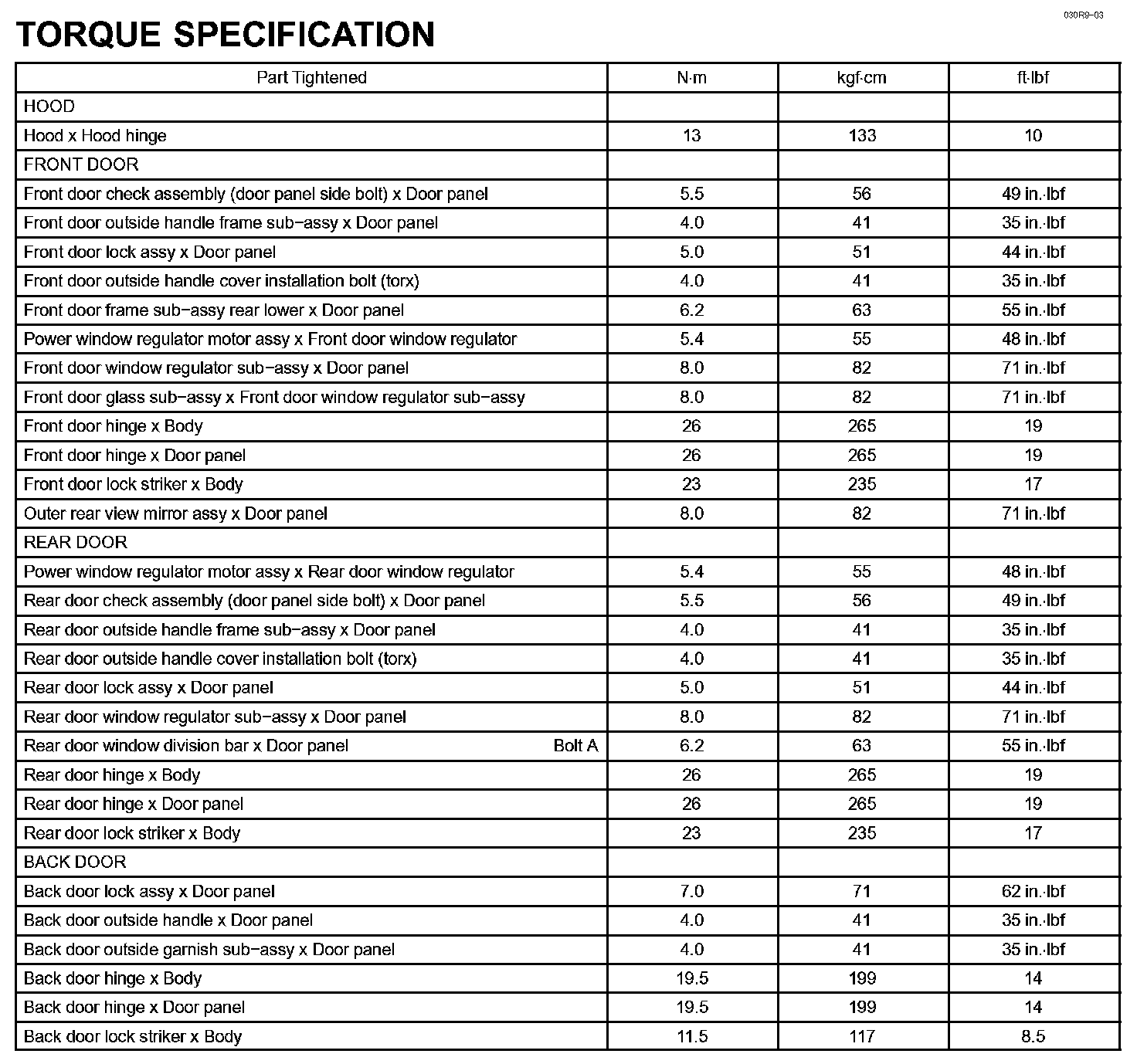 Engine Hood/Door-Torque Specification: