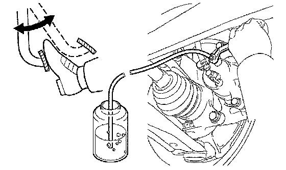 1) Connect the vinyl tube to the bleeder plug at the right front wheel or the right rear wheel and loosen the bleeder plug.