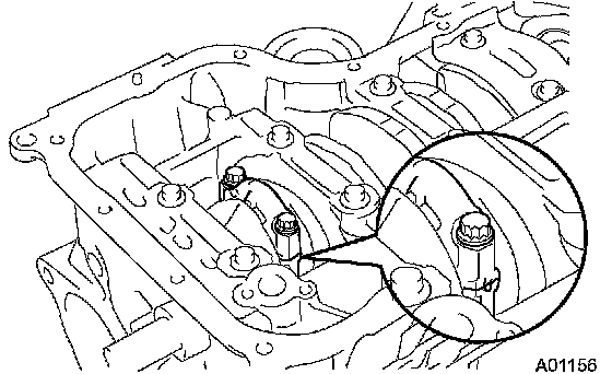 a) Using a 5 mm socket hexagon wrench, remove the 4 oil nozzles.