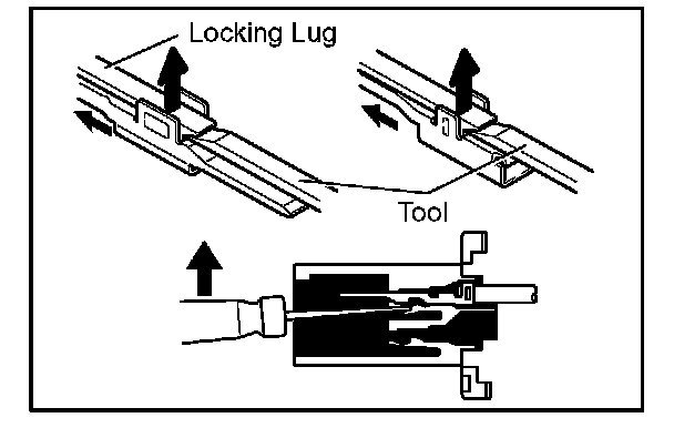 a. Locking device must be disengaged before the terminal locking clip can be released and the terminal removed from the connector.