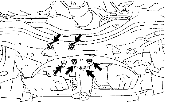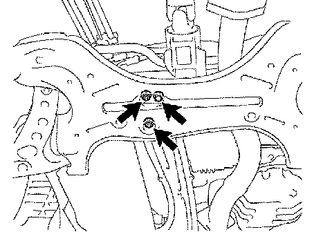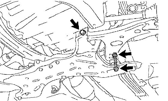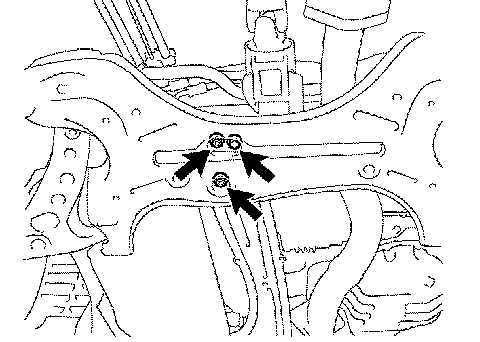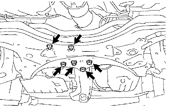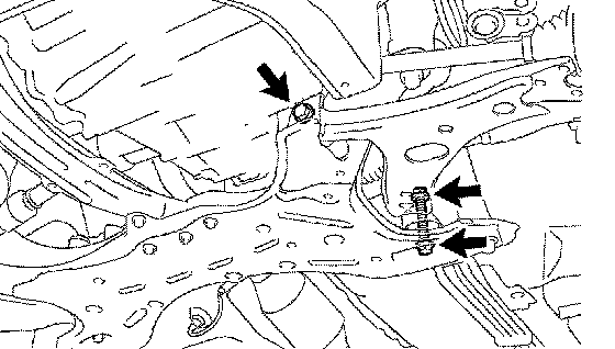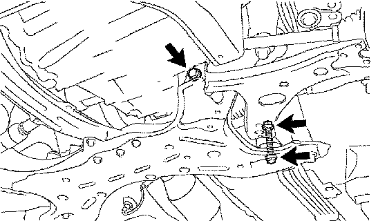 e. Lower the transmission jack, remove the front suspension crossmember sub-assembly.