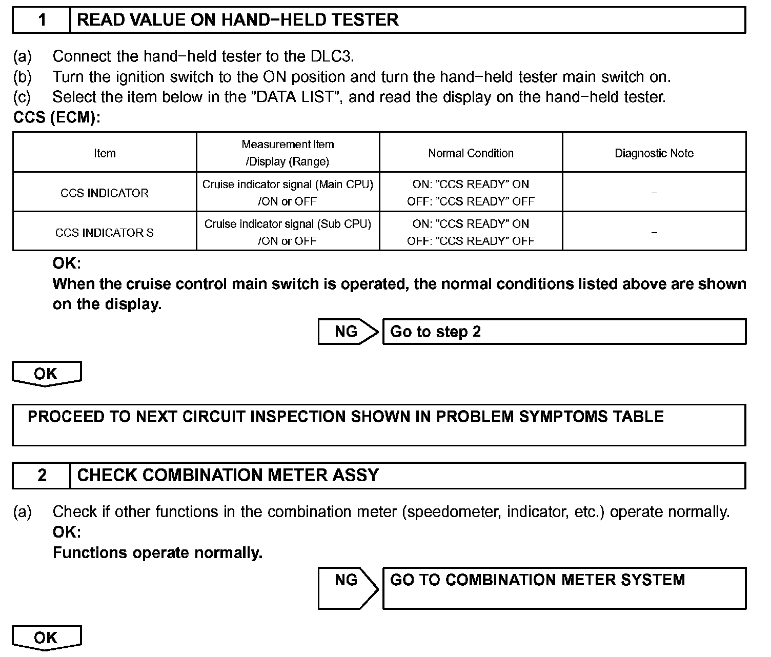 DTCs can be read by counting the number of times the CRUISE main indicator light blinks.