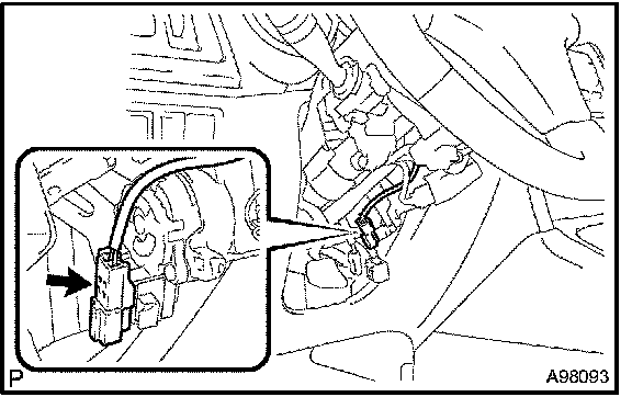 b. Disconnect the unlock warning switch connector from the ignition switch assembly.