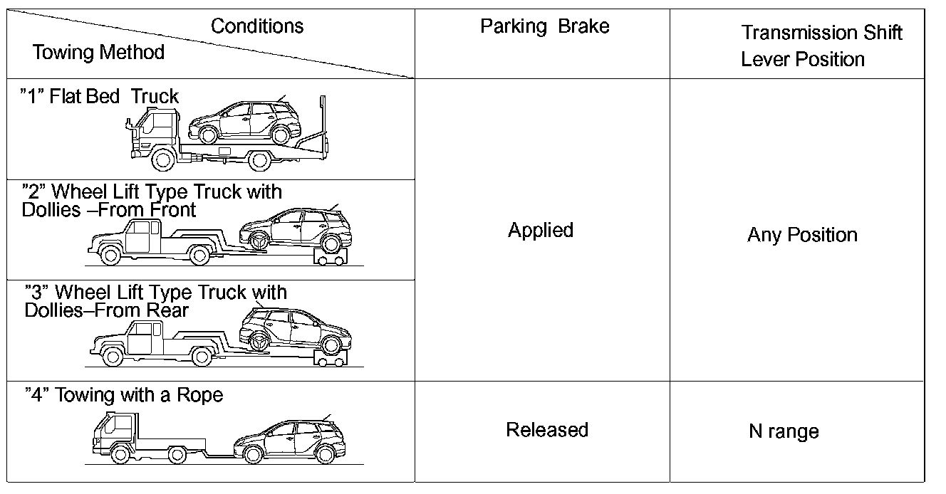 WHEN TOWING FULL-TIME 4WD VEHICLES- Use one of the methods shown to tow a vehicle.