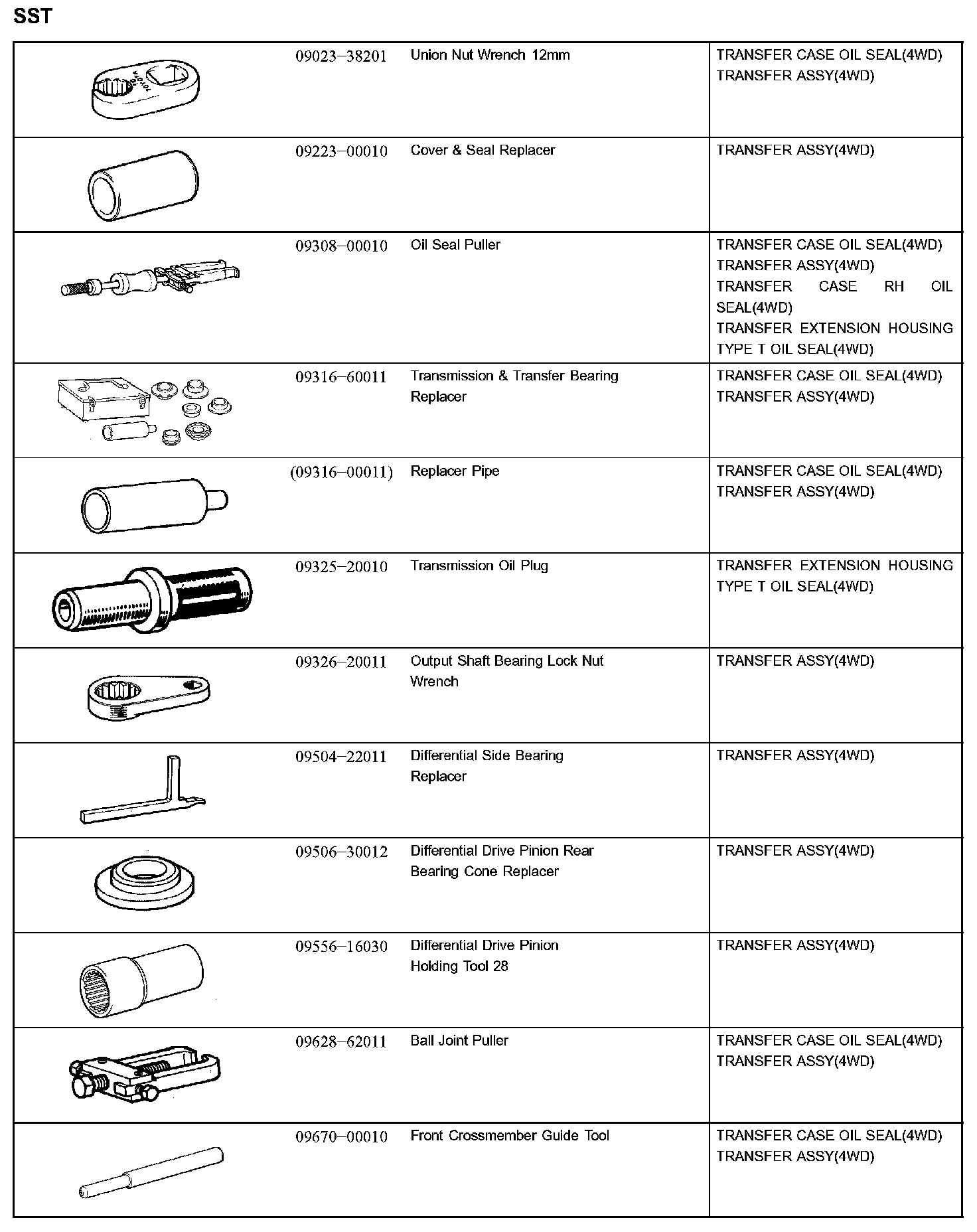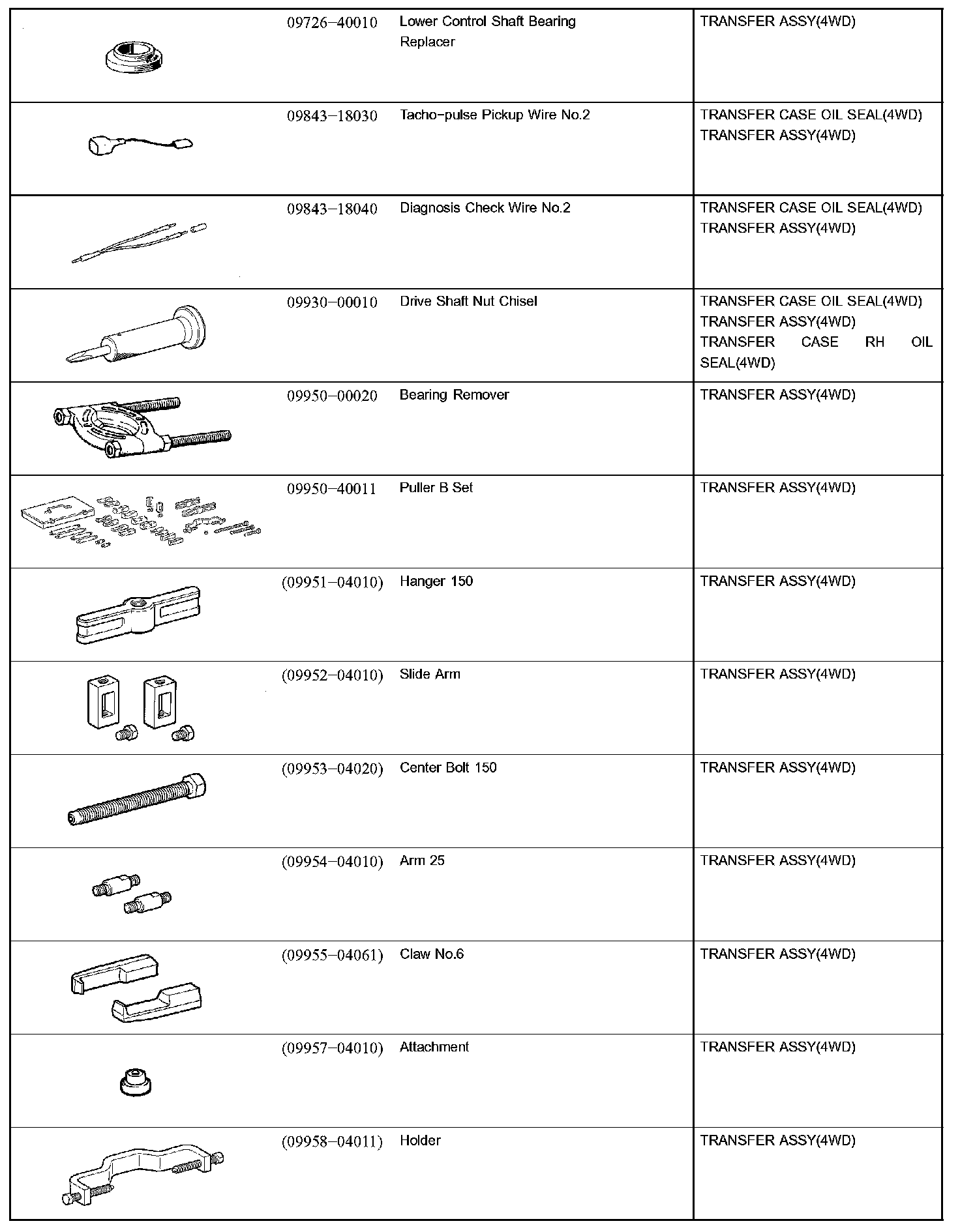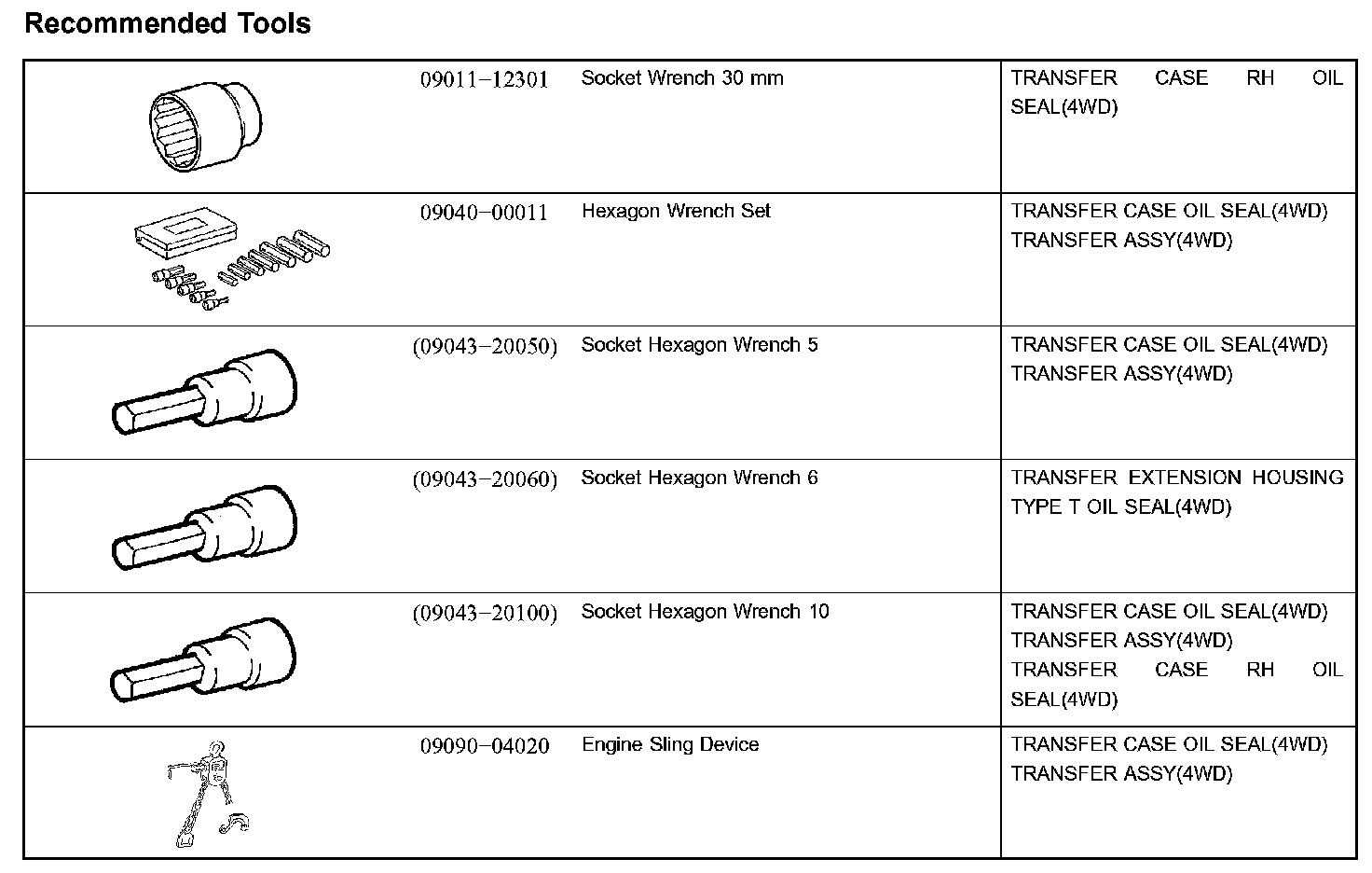 Transfer Case: Tools and Equipment