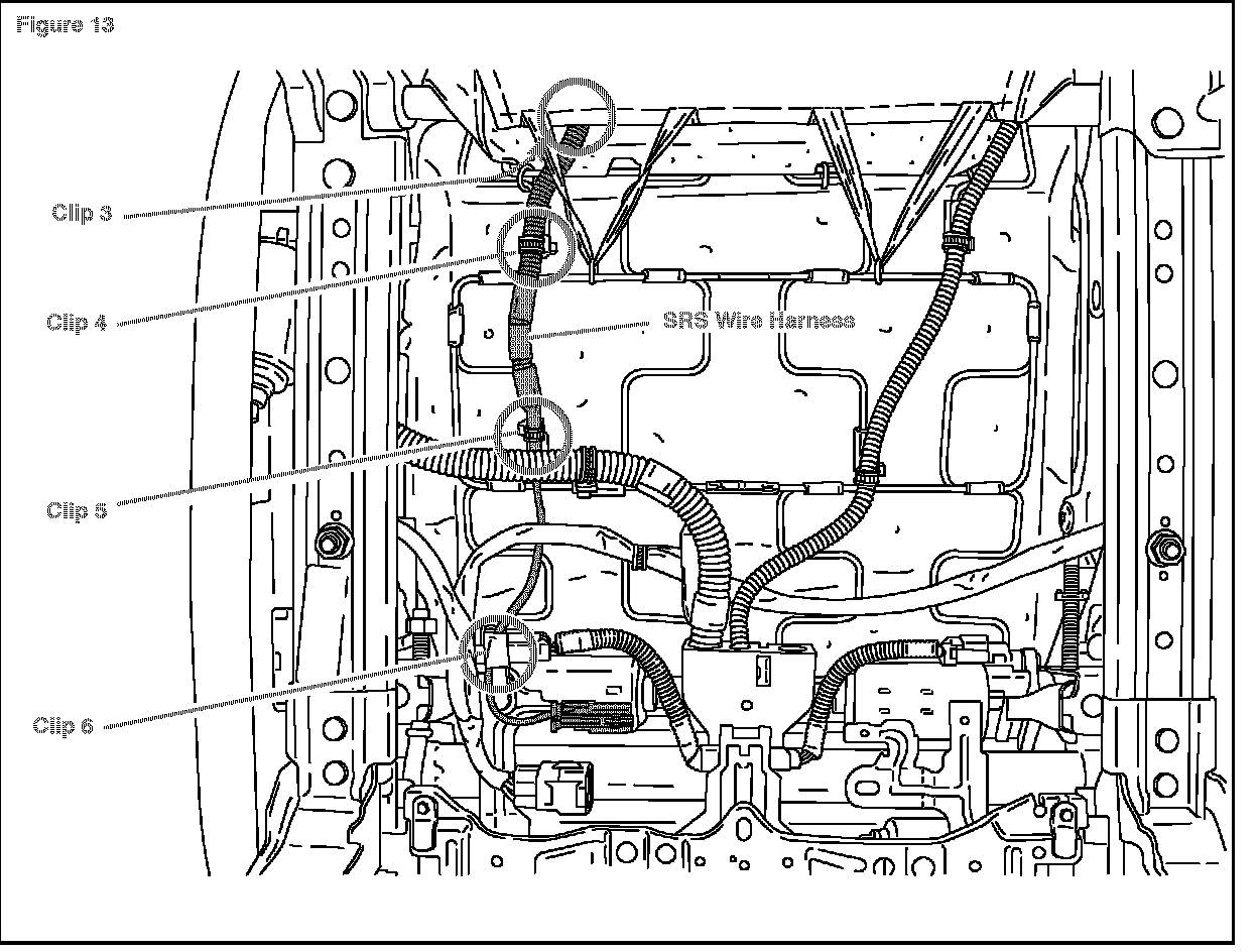 NOTE: If no concern is identified after inspecting the floor harness and the center airbag sensor assembly, please follow the repair procedure below to replace the corresponding side airbag assembly.