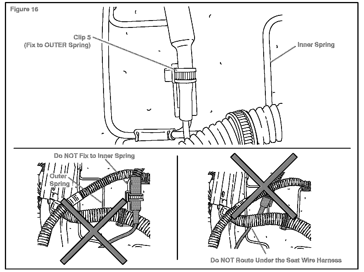 15. Install the remaining 4 clips to the seat frame bottom using the diagrams below.