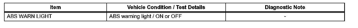 HINT: By accessing the ABS DATA LIST displayed by the intelligent tester, you can read the value of the switches and sensors without removing any parts. Reading the DATA LIST as the first step of troubleshooting is one method to shorten labor time.