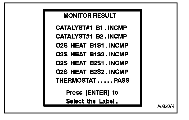 CHECKING MONITOR STATUSHINT: "MONITOR RESULT" indicates normal or malfunction of each component and system when a judgement was made.
