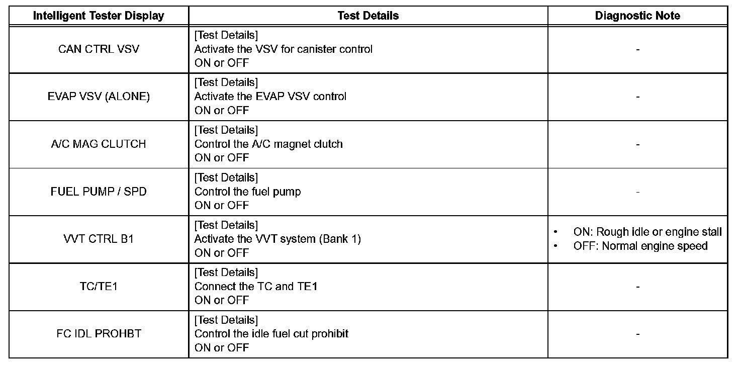 ACTIVE TESTHINT: Performing the intelligent tester's ACTIVE LIST allows relay, VSV, actuator and other items to be operated without removing any parts. Performing the ACTIVE LIST early in troubleshooting is one way to shorten labor time. The DATA LIST can be displayed during the ACTIVE TEST.