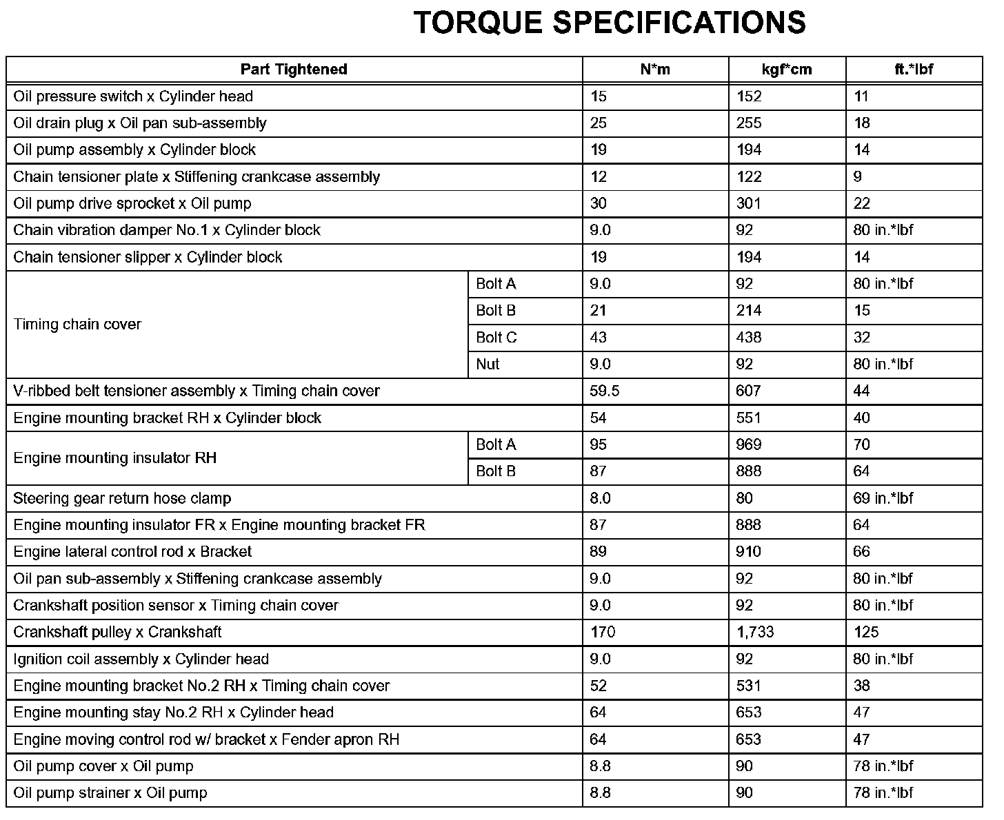 Lubrication-Torque Specifications: