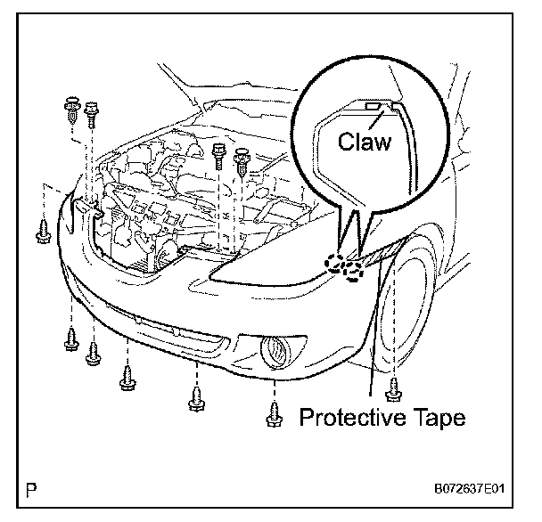 c. Using a screwdriver, disengage the 4 claws and remove the bumper cover.