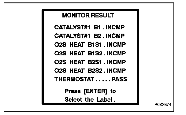 e. Select the intelligent tester menus: DIAGNOSIS, ENHANCED OBD II, MONITOR INFO and MONITOR RESULT. The monitor result appears after the component name.