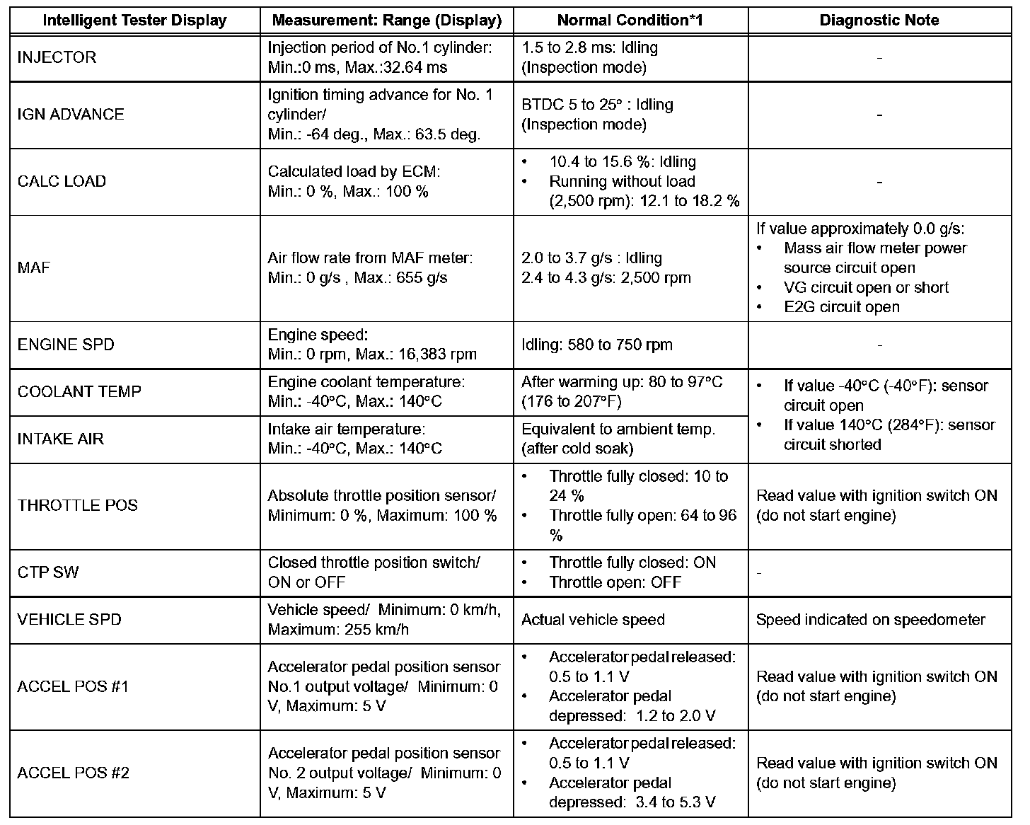HINT: *1: If no idling conditions are specified, the transmission gear selector lever should be in the N or P position, and the A/C switch and all accessory switches should be OFF.