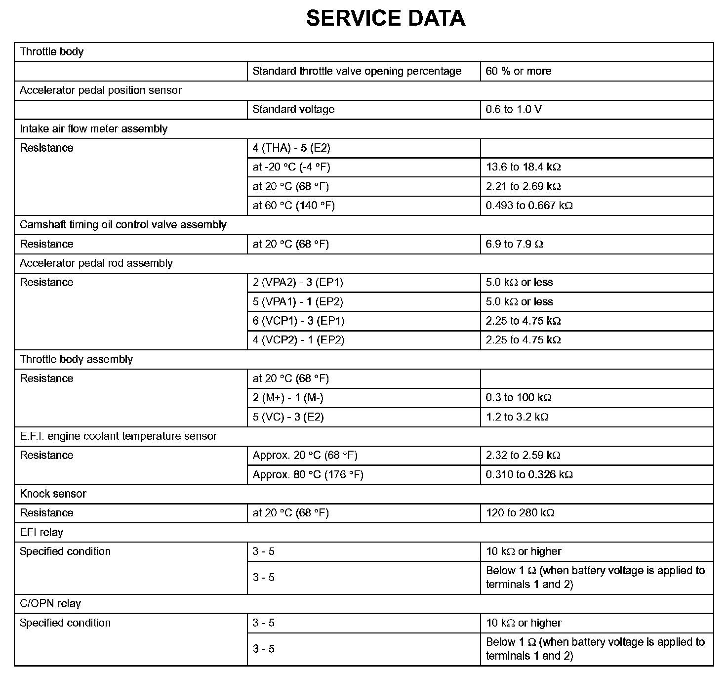Engine Control System-Service Data: