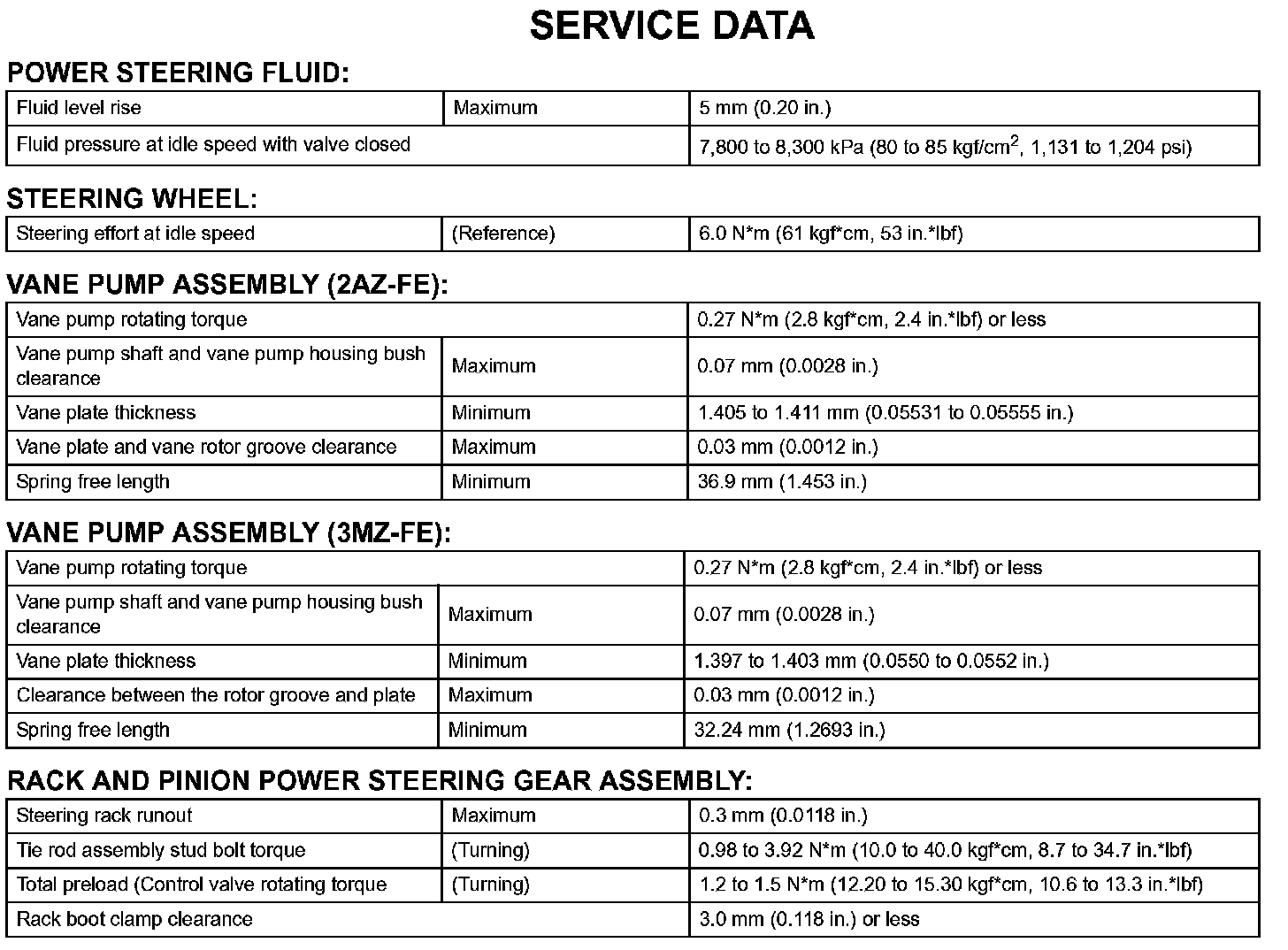 Power Steering-Service Data:
