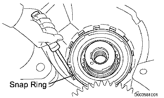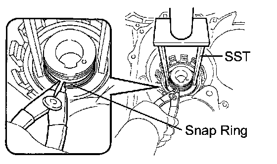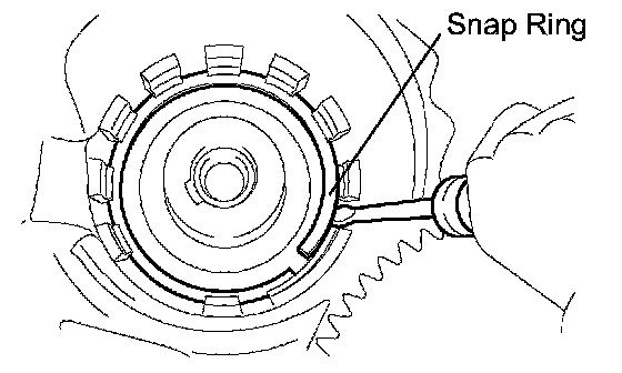 a. Using a screwdriver, remove the snap ring from the transaxle case.