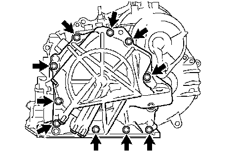 b. Tap in the circumference of the rear cover with a plastic hammer to remove the transaxle rear cover from the transaxle case.