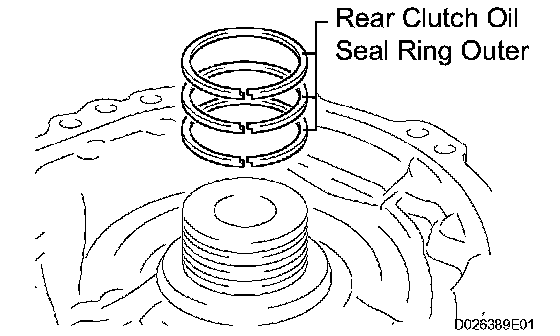 a. Remove the 3 rear clutch oil seal rings from the transaxle rear cover.