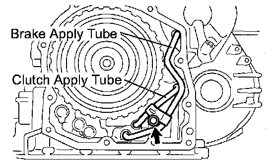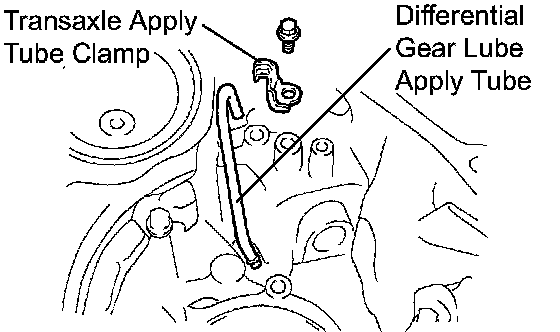 a. Remove the bolt, transaxle apply tube clamp and differential gear lube apply tube from the transaxle housing.