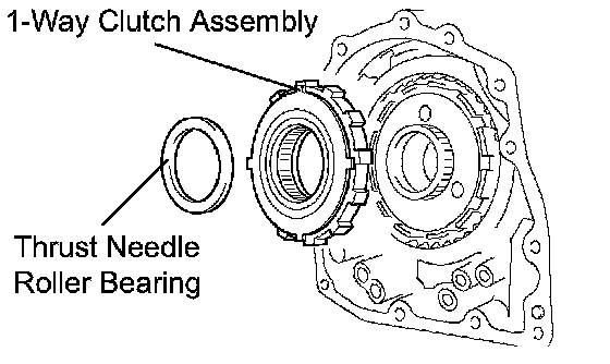 a. Remove the 1-way clutch assembly and the thrust needle roller bearing from the transaxle case.