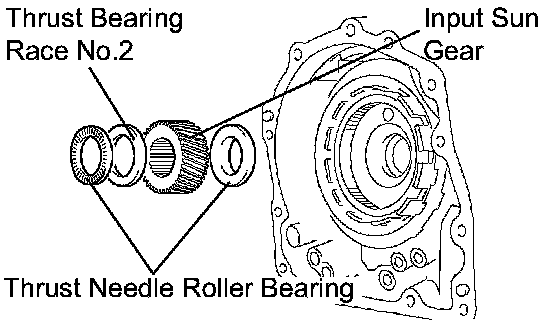 a. Remove the 2 thrust needle roller bearings, thrust bearing race No.2 and input sun gear from the transaxle case.
