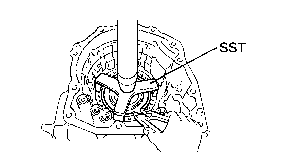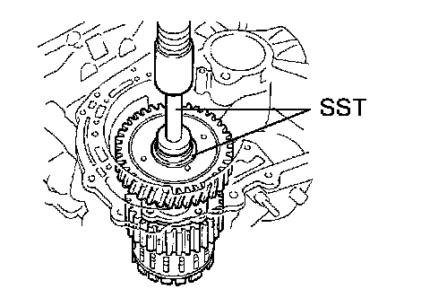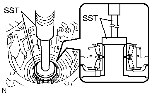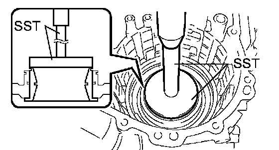 a. Using SST, remove the underdrive cylindrical roller bearing from the transaxle case.