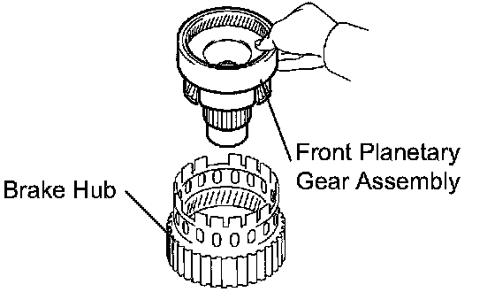 a. Using a screwdriver, remove the snap ring and front planetary ring gear from the brake hub.