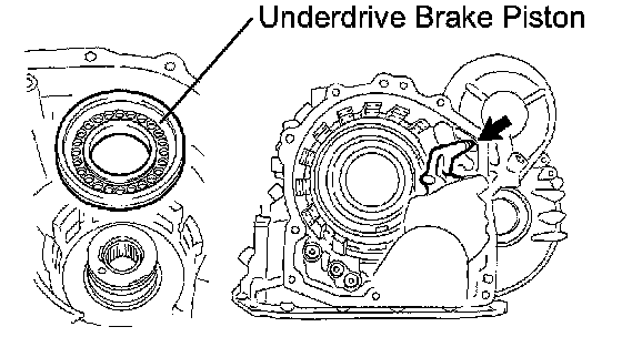 b. Remove the 2 O-rings from the underdrive brake piston.