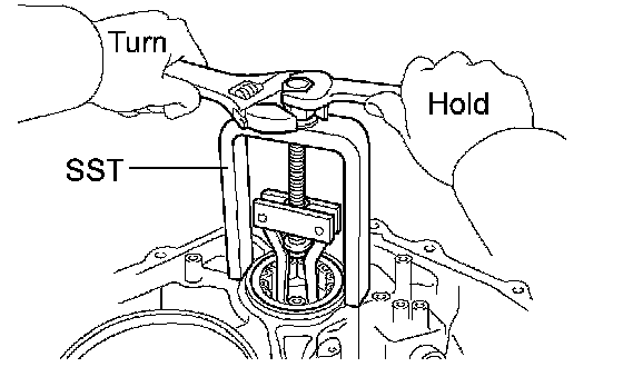 a. Using SST, remove the needle-roller bearing from the transaxle rear cover.