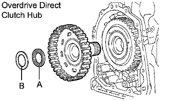 a. Coat the bearing and bearing race with petroleum jelly, install them onto the underdrive clutch.