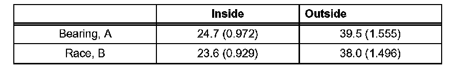 Bearing and Bearing Race Diameter: mm (inch):