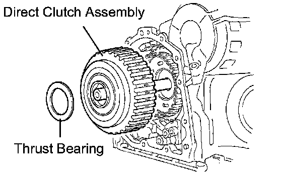 b. Install the direct clutch assembly and thrust bearing to the rear planetary sun gear assembly.