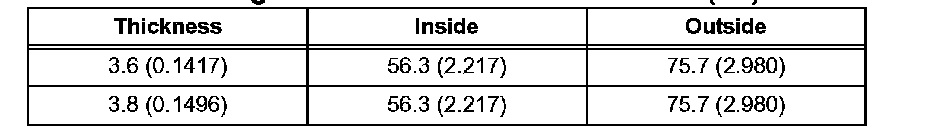Bearing Thickness and Diameter: mm (inch):