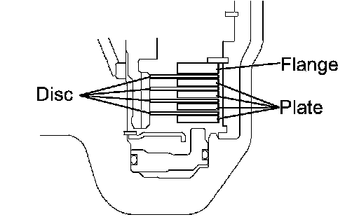 b. Install the 4 discs, 4 plates and flange to the transaxle case.