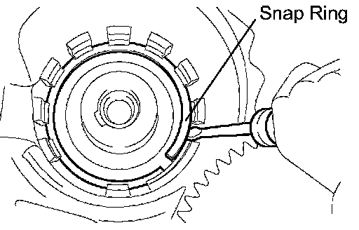 NOTICE: The snap ring should be fixed certainly in the groove of the transaxle case as the gap exists except in the lock of teeth.
