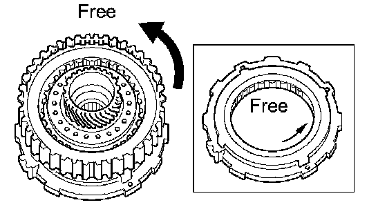 b. Rotate the underdrive clutch assembly to check the rotating direction for the lock or free operation.