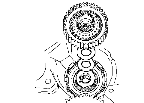 NOTICE: The disc in the direct clutch should completely match with the hub attached outside the rear planetary sun gear. Otherwise, the rear cover can not be installed.