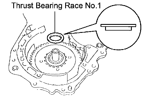 a. Install the thrust bearing race No.1 to the transaxle case while checking its direction.