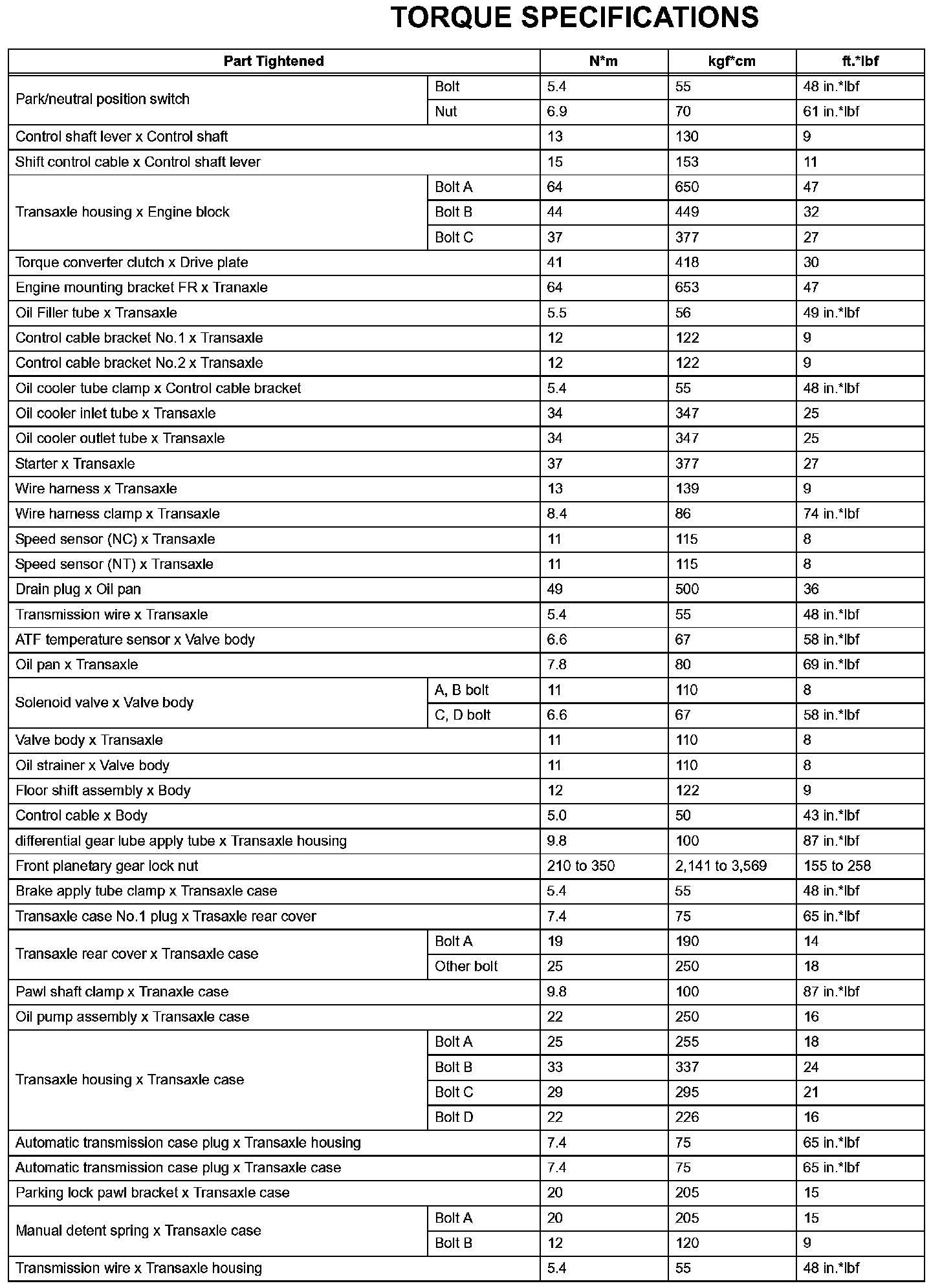 Automatic Transaxle-Torque Specifications (Part 2):