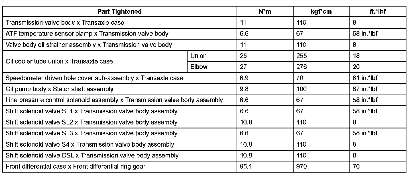 Automatic Transaxle-Torque Specifications (Part 1):
