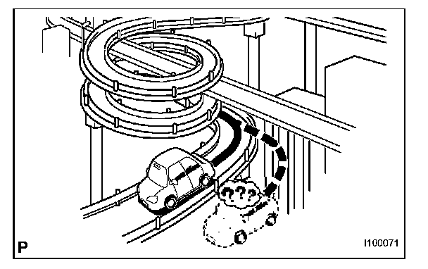 8. When the ignition switch is turned on (ACC or IG) on a turntable before parking, the current vehicle position mark may not point in the correct direction. The same will occur when the vehicle comes out of parking.