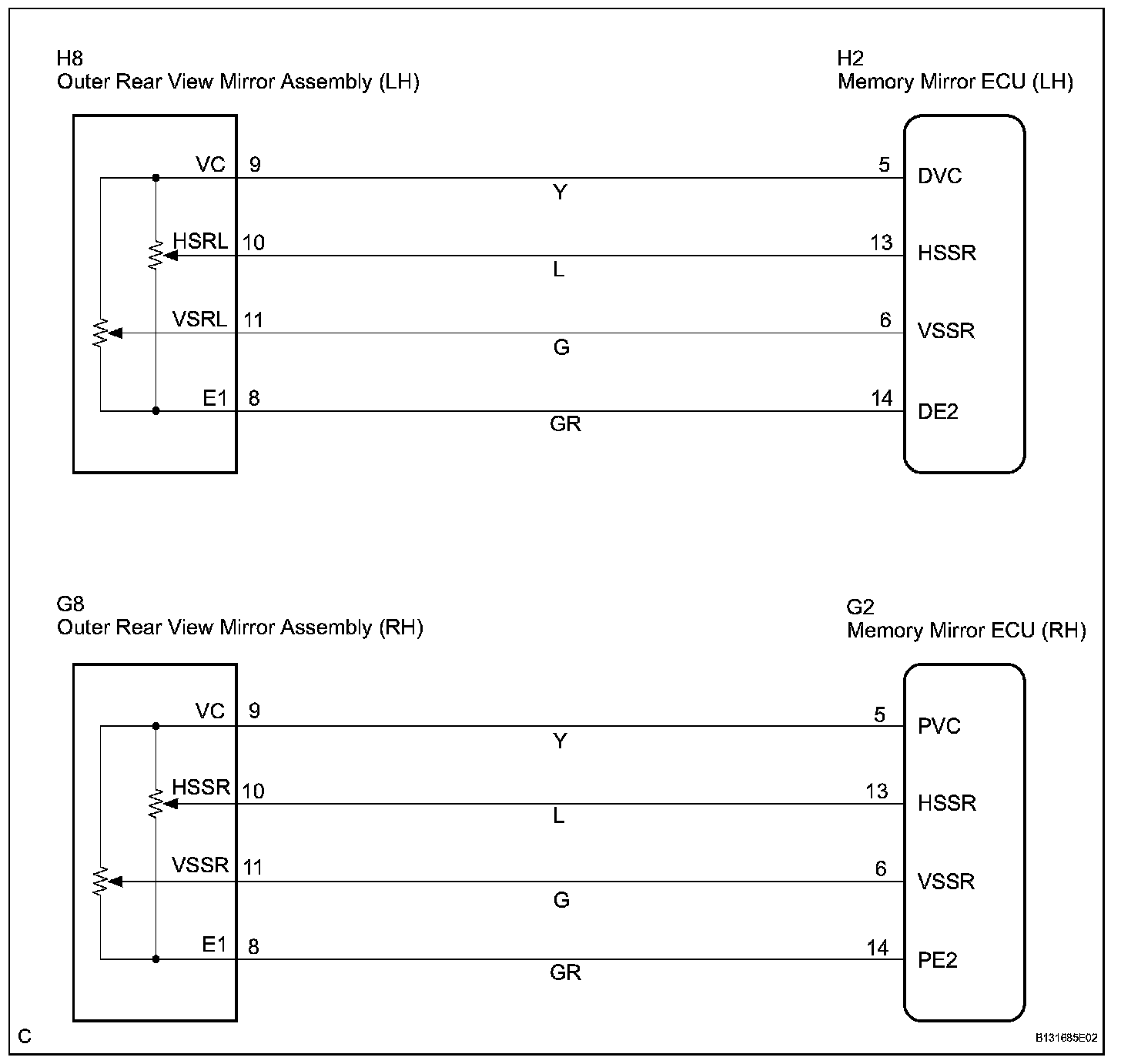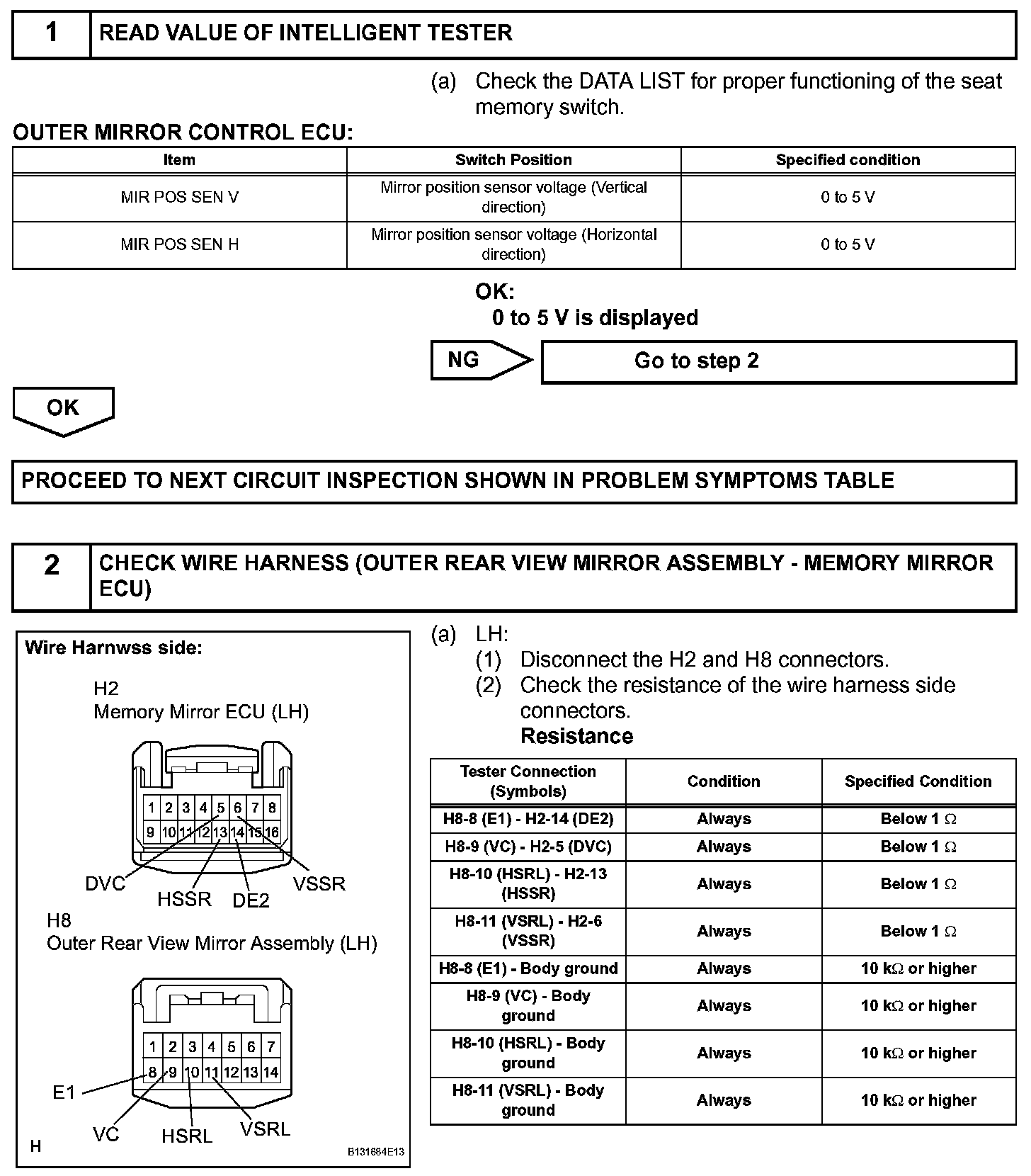 HINT: The power mirror control system is part of the multiplex communication system. This system features shared communication wiring that reduces the wiring complexity of the communication lines. The first step in any repair is to confirm the proper operation of the communication system. Proceed with troubleshooting after the communication has been verified (See Multiplex Communication System).