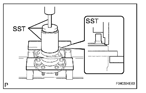 c. Using SST and a press, install the skid control sensor to the axle hub.
