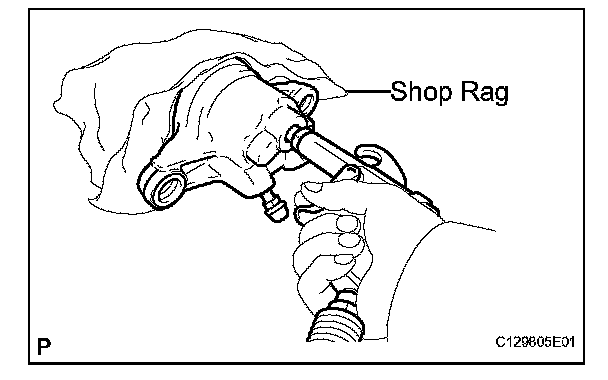 (a) Place a shop rag or a piece of cloth between the piston and the disc brake cylinder.
